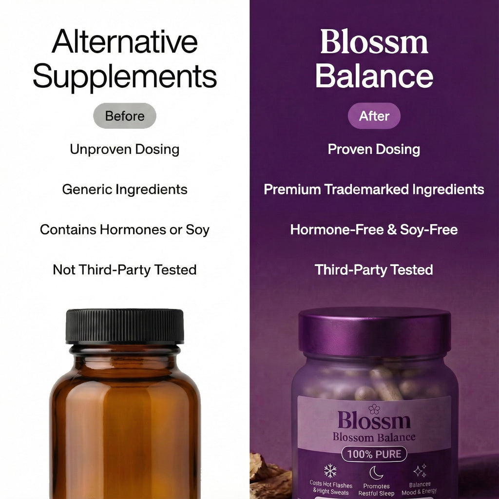 Night sweats. Mood swings. Brain fog. It's not you, it's your hormones. Blossm Balance is the hormone-free formula helping 47,000+ women take back control.